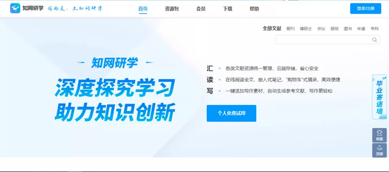 平台介绍:面向高校学生、教师、学者及科研人员,在传统文献服务的基础上,以云服务模式提供CNKI海量文献检索、订阅推送、研读学习、专题及成果管理等服务。