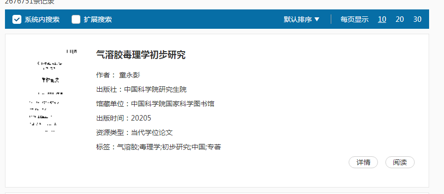点击文献标题或详情按钮进入资源详情页面,点击“在线阅读”即可进入资源阅读;通常允许试读文献前十页,当超出试读范围,页面会提示借阅,提醒借阅时长和次数。