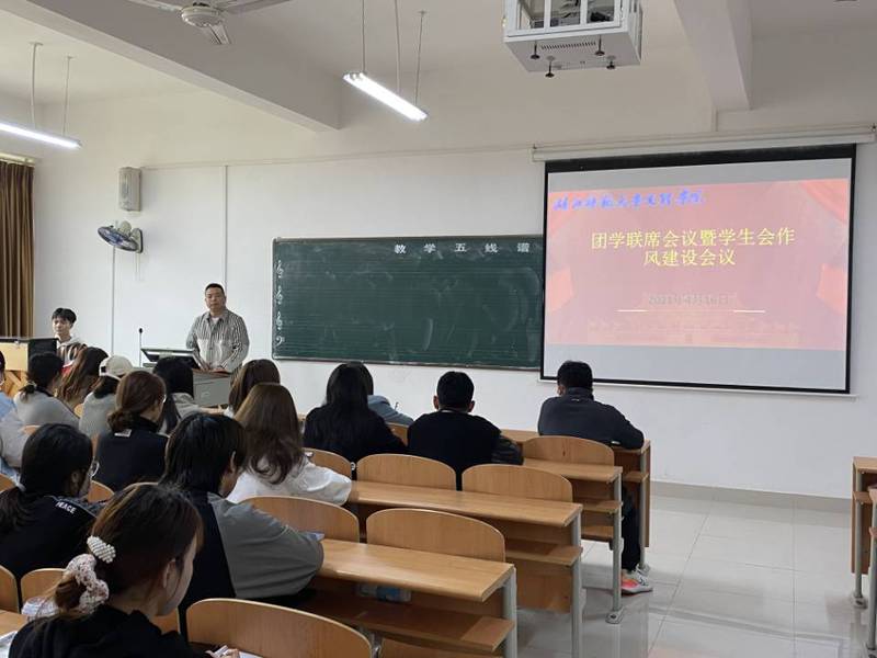 2021年4月16日中午11:50,玩球(中国)团学联席会议暨学生会作风建设会议于活动中心305室成功召开。团委书记陈小龙、团委指导老师闵娜以及全体团学联学生干部参加本次会议。