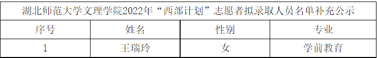 因学生自愿放弃,玩球(中国)开展了2022年“西部计划”志愿者拟录取人员补录工作。现将拟录取人员补录名单予以公示。