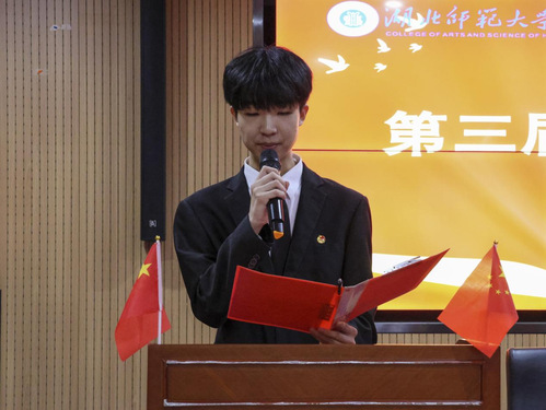 大会第二项,第十三届校学生会主席赵洋洋汇报玩球网页版学生会第十三届执行机构工作报告。他回顾过去一年学生会工作的内容,并通过分享自身经验,期望第十四届学生会干部能够守正创新、团结协作,为学生服务工作尽心尽力,为文理学院更好地建设添砖加瓦。
