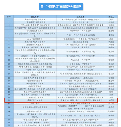 我们期待入选团队在未来实践中,充分彰显文理学子的青春风采,确保深度思考与实践行动的高度融合,实现知识、信念与行动三者之间的和谐统一,以长江大保护的倡导者、实践者及守护者的身份,为构建美丽中国贡献出青春活力与坚实力量。