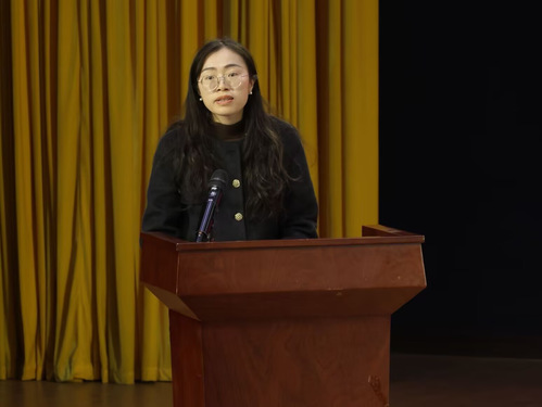 紧接着,优秀志愿者代表张钰娴和优秀青支队代表周诚分别上台进行发言,他们总结了自己的志愿服务经验和收获所得,表达了能为学校志愿服务和社会服务贡献自己力量的幸运和骄傲,同时激励更多的青年学子投身于志愿服务事业。