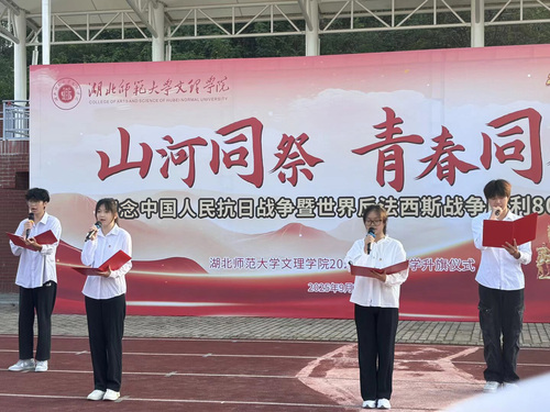 (通讯员:向婉荣)2025年9月3日早7时,玩球网页版师生齐聚操场,以“山河同祭,青春同行”为主题,举行庄严的升旗仪式暨“开学第一课”,共同纪念中国人民抗日战争暨世界反法西斯战争胜利80周年。