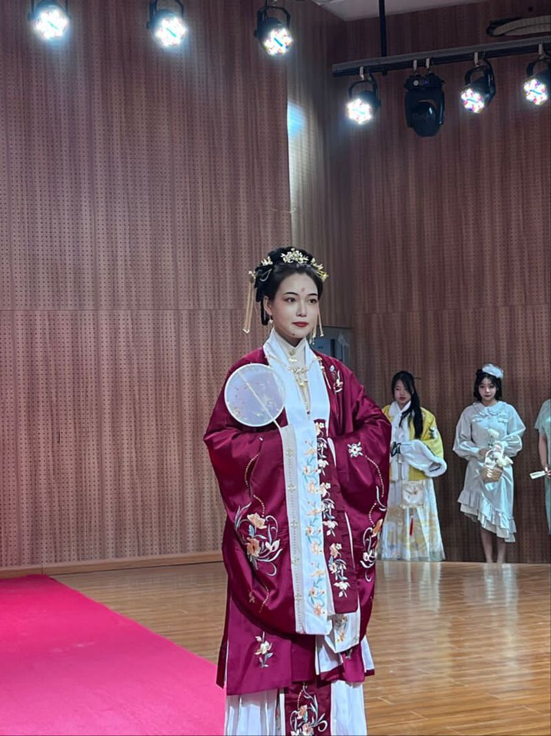 比赛伊始,主持人详细介绍了此次活动的评分标准并宣布比赛正式开始。 伴随着在场观众热烈的掌声,一号选手武如钰同学身着红色汉服,手执圆扇,步摇微晃,尽展端庄大气的国风美,令台下的观众不禁连连赞叹。紧接着,四号选手李雨夏同学身穿一袭碧绿的旗袍映入眼帘,似早夏娇嫩的荷叶,清新灵动。在部分选手展示完后,来到了中场的休息时间,由舞蹈队带来的节目令台下的观众沉浸其中。在所有选手展示完毕后,文艺部的曹颖同学带来了精彩的琵琶演奏,如听仙乐耳暂明。经过各位评委评分并得出获奖名单,此次比赛正式结束。
