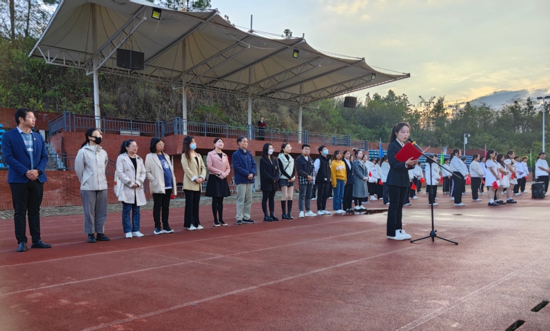 扬雄风,挺傲骨,步履铿锵。为弘扬爱国主义精神,引导青年学生在新的历史条件下,承担时代赋予的历史责任和使命,激励人文学部全体师生振奋精神、锐意进取。玩球(中国)人文学部于11月6日早上7点在风雨操场举行以“担当民族复兴重任,谱写青春绚丽华章”为主题的升旗仪式,莅临本次升旗仪式的人员有人文学部主任熊子延、人文学部党总支副书记汪玉宝、人文学部团总支副书记胡文玉、学部专任教师代表邓薇薇和袁梦亚老师、人文学部全体辅导员及人文学部行政办、教学办老师。