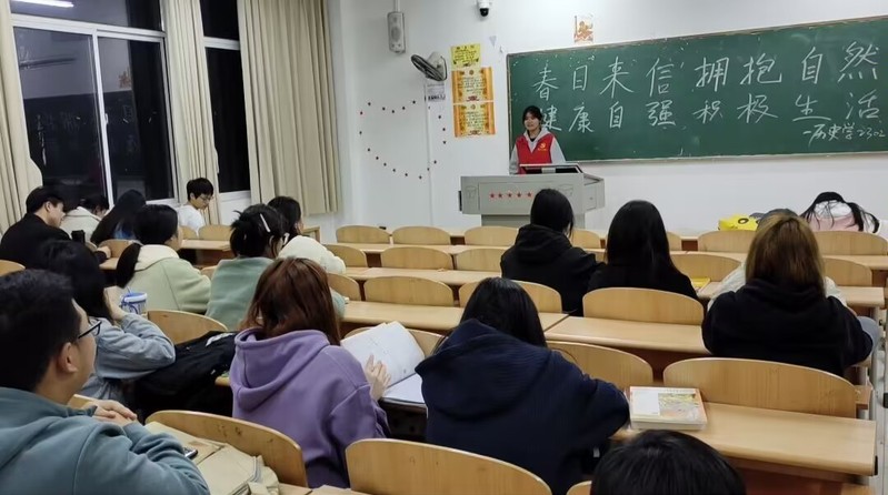 学生党员覃如苗在历史学2301班宣讲时谈到:“持之以恒地保持规律的作息对身体健康非常重要,需要进行自我调整并建立健康的作息。”她与同学们进行了贴心的交流,提醒大家加强身体锻炼,多出门亲近大自然并鼓励同学们努力学习养成良好的生活习惯。通过党员同志的演讲,同学们也深刻意识到熬夜给自身带来的危害之大。
