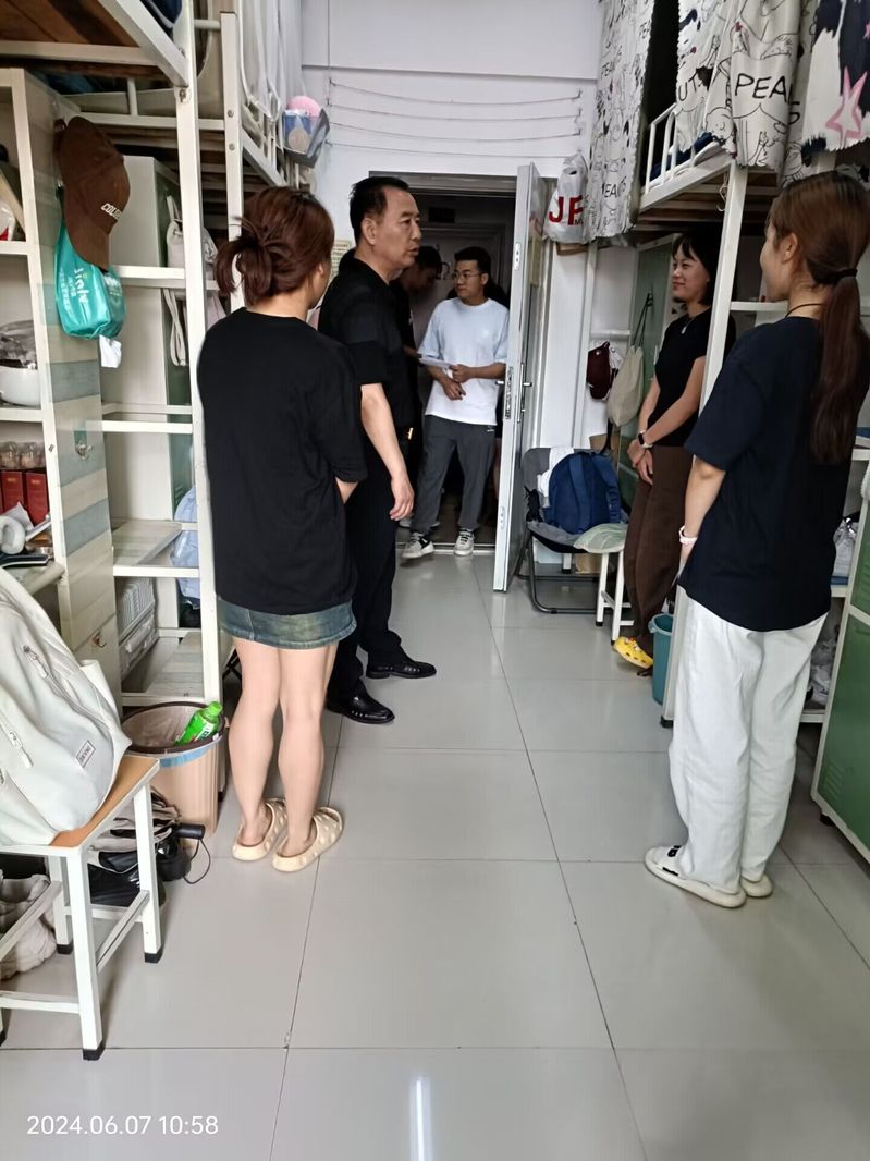 上午11时,按照校党委、学工部指示要求,在人文学部党总支书记周景斌老师的带领下,人文学部全体辅导员老师进入学生宿舍,对寝室的各项安全情况进行仔细检查。端午假期将至,周景斌书记着重提醒同学们回家要注意交通安全,防溺水、谨防诈骗,保护自身与财产安全;留校的同学们应合理规划假期时间,遵守校纪校规。此外,室内要保持寝室卫生,防火防电,时常开窗通风,勤打扫,共同打造一个干净、整洁、和谐、美好的舒适环境。