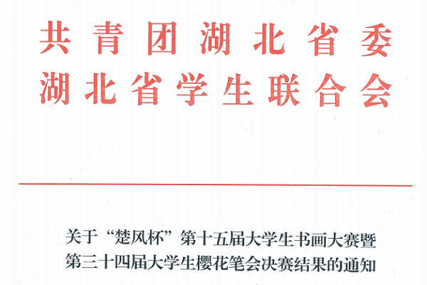 2019年5月29日,共青团湖北省委、湖北省学生联合会公布“楚风杯”第十五届大学生书画大赛暨第三十四届大学生樱花笔会决赛结果,玩球(中国)高职二学部韩诗宇同学荣获大赛展览组软笔类优秀奖,充分展现了玩球(中国)学生过硬的综合素质,凸显了玩球(中国)文化育人工作实效。