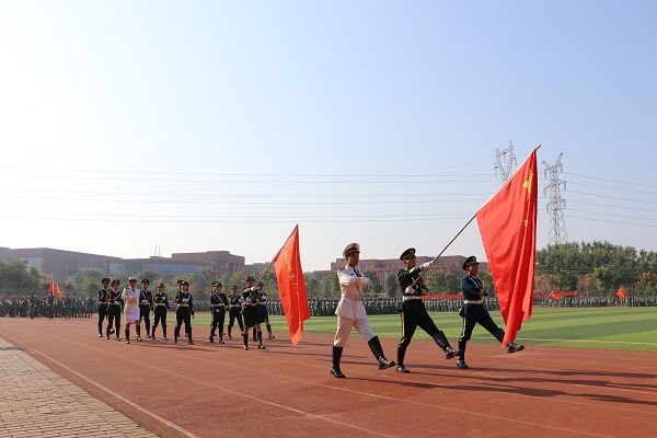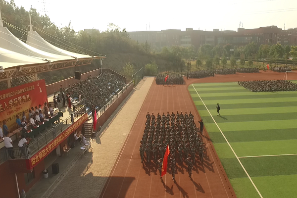 活动由党委副书记杨之毛主持。在庄严的升国旗仪式之后,以退伍大学生国旗班领衔,来自六个学部的新生军训方队进行了分列式汇报表演,他们精神饱满,意气风发,迈着正步通过主席台。随后,新生代表分别进行了大气磅礴的军体拳表演和队形变换表演,摆出五角星、党徽、“70”、“1949”、“2019”、“中国”、“文理”等图案,向中华人民共和国成立七十周年献礼,全场响起热烈掌声。