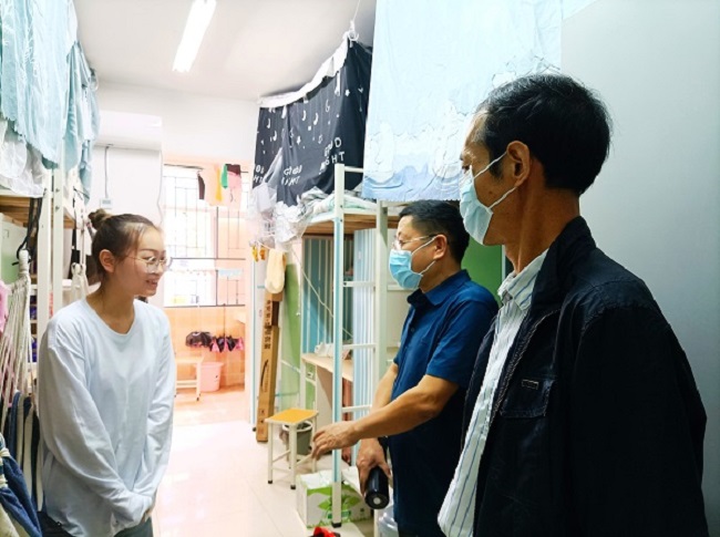 参加检查人员由机关各部门、各学部负责人和辅导员、后勤保卫部工作人员等组成。常务副院长杨学斌、党委书记杨邓红、副院长张志华、副院长王胜国等分别带队,对学生公寓、食堂等进行了全面检查。检查过程中,校领导重点查看了疏散通道是否畅通,消防设施器材是否完好有效,是否存在违规使用大功率电器等情况,以及爱国卫生运动开展情况,并亲切看望了新生,提醒学生非必要尽量不要外出,如果有事外出要做好防护措施,同时对学生进行了安全知识教育。