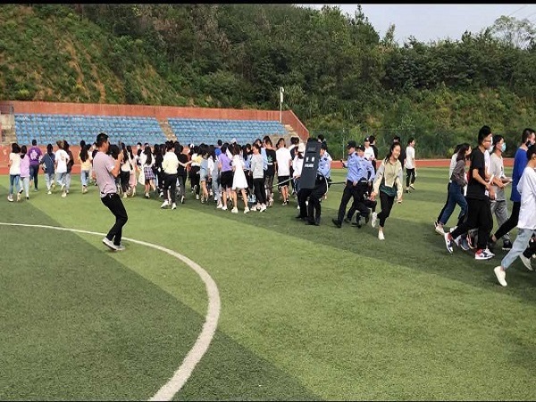 “上课期间,外人禁止入内……校门有人冲卡,请求紧急支援。”9月30日下午,由我校和开发区·铁山区汪仁派出所联合开展的“2020国庆·中秋安保实战演练”活动在玩球(中国)运动场举行,来自各学部的300余名师生和保安人员参加了演练。