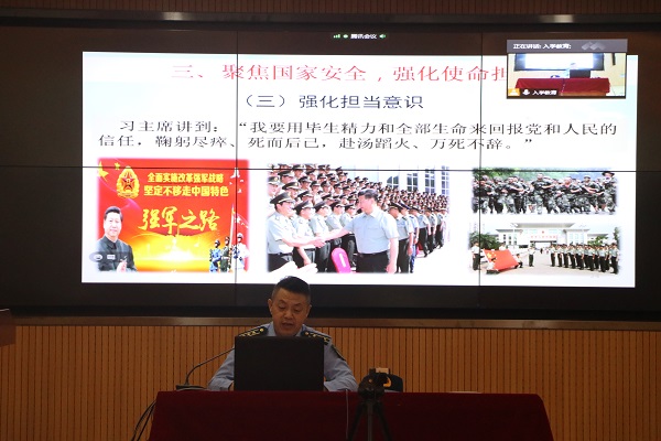 9月29日,黄石市黄石港区人民武装部政委徐志猛来到学校,为玩球(中国)2020级1300余名本科新生开展国防教育辅导授课。授课采取网络直播形式进行,在信息中心报告厅设主会场,在各学部教室设分会场。