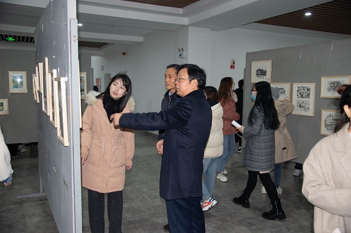在开幕仪式上,教育与艺术学部主任王文致辞;美术学1903班石宇燕、综合绘画1803班张裕同学先后交流创作体会;徐俊超老师作为指导教师讲评了这次艺术实践活动;副院长王胜国发言,对2018级、2019级美术学生艺术实践活动给予了充分的肯定。