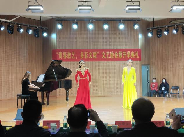 为了使2021届新生更好地适应大学生活,提升学生们的艺术素养,展现教育与艺术学部的风采。2021年11月4日晚18:00在大学生活动中心音乐厅举行了“青春教艺,多彩文理”文艺晚会暨开学典礼。学工部部长汪崇文,副部长陈小龙、肖劲光,校团委书记陈荟芸,黄石电信经理陈学、黄石电信文理学院服务中心经理张昌伟、保卫部部长许涛、理工学部党总书记、人文学部党总书记、教育与艺术学部相关领导及辅导员应邀参加了开学典礼。