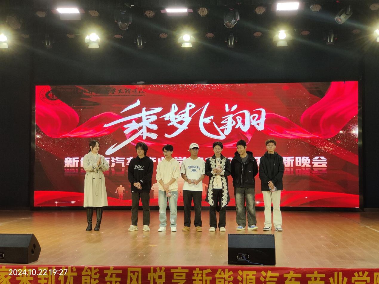 2024年10月22日,玩球网页版优能东风悦享新能源汽车产业学院在学术交流中心举办了“乘梦飞翔”2024级迎新晚会。玩球网页版产教融合管理中心党支部书记周征征、玩球网页版教育与艺术学部团学指导老师刘东辉、玩球网页版优能东风悦享新能源汽车产业学院院长许新山和全体教职工老师以及全体2024级新生等参加了本次迎新晚会。