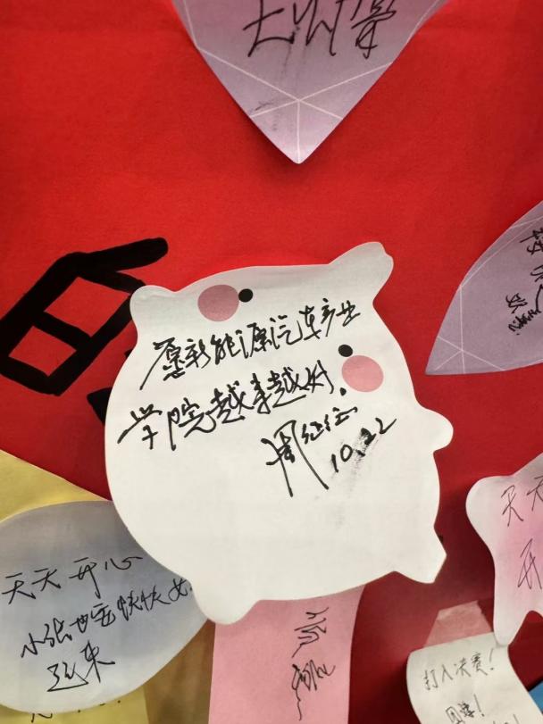 晚会开始前,签到区处设有心愿打卡区,现场火热,大家踊跃参与。周征征书记同样写下了美好祝愿:“愿新能源汽车产业学院越来越好!”。愿大家都能怀揣梦想,寻找到人生方向,青春与梦想同行。
