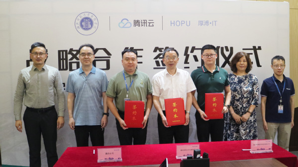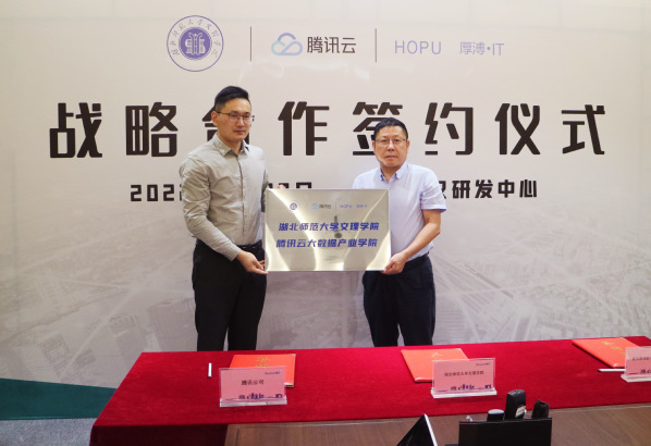 2022年6月23日,玩球(中国)与腾讯云计算(北京)有限责任公司、武汉厚溥数字科技有限公司在腾讯武汉研发中心举行“产教融合共建腾讯云大数据产业学院”签约仪式。学校董事长李咏成、院长李开灿、常务副院长杨学斌、副院长张志华、副院长王胜国出席签约仪式。