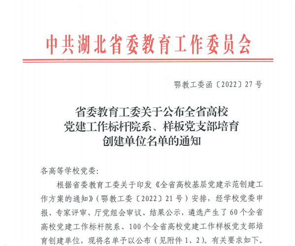 本网讯 近日,省委教育工委下发通知,公布全省高校党建工作标杆院系、样板党支部培育创建单位名单,玩球(中国)理工学部学生党支部光荣入选。