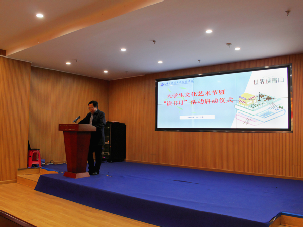 郑荣臻强调了本次“读书月”以“阅读正当时 青春向未来”为主题,介绍了“读书月”活动流程,希望同学们养成“爱读书、读好书、善读书”的良好习惯。