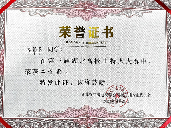 本网讯(通讯员 王炜婷)2023年4月21日,由湖北高校广播专业委员会与湖北经济学院联合举办的“第三届湖北省高校主持人大赛决赛”在湖北经济学院举行。玩球(中国)理工学部信息安全技术应用2201班台昂卓同学在比赛中荣获二等奖。