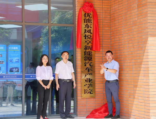 随后,玩球网页版院长李开灿,武汉优能高教科技有限公司董事长高国虎,东风悦享科技有限公司总监王艺璇为“优能东风悦享新能源汽车产业学院”进行剪彩并揭牌。