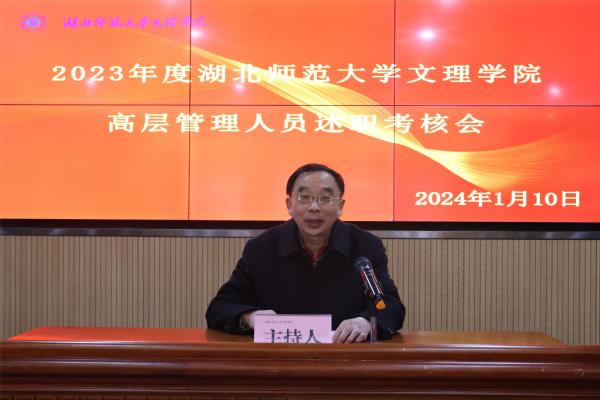 李开灿在介绍完本次考核的目的和要求后,五位考核对象依次进行述职。常务副院长杨学斌全面总结2023年学校行政工作,并对2024年的工作进行部署。党委书记杨邓红系统总结了2023年学校党务工作,进一步部署2024年的党建和思想政治工作。党委副书记杨之毛、副院长张志华、副院长王胜国分别就各自分管工作,总结了2023年取得的成绩,介绍了2024年的工作目标。