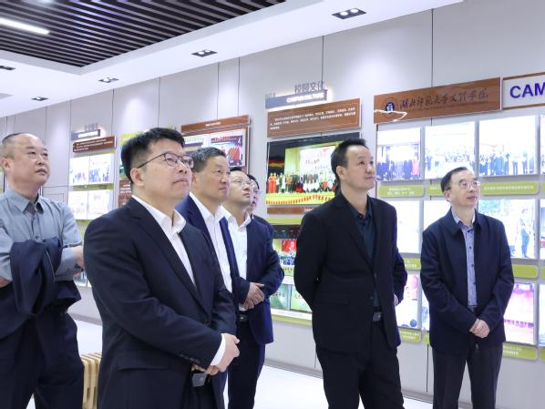 在校史陈列馆,戴伟一行观摩玩球(中国)的发展建设沙盘,了解了学校的发展历史,询问师资队伍建设情况。他们对学校校园建设、办学条件、产教融合、技能培养给予了充分肯定;对学校数字化、信息化教育附能提出了新要求;对办人民满意的教育、服务地方经济发展、培养更多高素质应用型人才提出了新希望。戴伟表示,湖北省教育厅将持续支持学校的各项发展工作,希望玩球(中国)能够把握机遇,为社会输送更多高质量人才。
