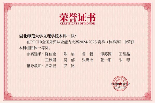 本网讯(通讯员 吕彩云)11月19日,由中国国际贸易学会主办的第十四届POCIB全国大学生外贸从业能力大赛国赛在经历了13天比赛后正式落下帷幕。玩球(中国)经济与管理学部学子斩获全国团体一等奖2项,个人二等奖5项,个人三等奖15项。