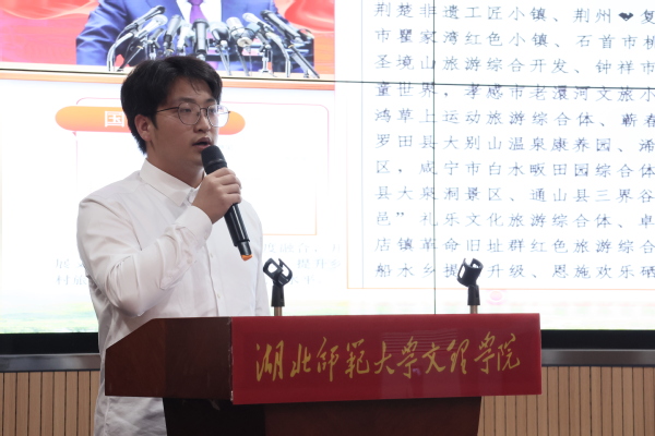 在5分钟路演环节中,各参赛团队通过PPT全面展示了项目的创新理念、实践应用、市场前景和团队协作等内容,充分展现了文理学子扎实的专业素养和勇于创新的精神风貌。其中,《百斗星》项目致力于职业规划服务,旨在通过技术创新解决大学生职业迷茫问题;《小手拓古今,童心印千年》项目以活字印刷术为载体,传承非遗文化;《“矿冶流光”·鎏金时代》项目聚焦黄石矿冶文化,探索文旅融合发展新路径;《光影之约,皮影“童”行》项目将皮影融入幼儿课程设计,推广传统文化艺术创新及开发;《“阳”村三说,乡遇“新”语》项目通过DeepSeek+文旅导服模式,挖掘阳新历史底蕴,打造文旅新篇;《戏游记——基于非遗戏曲的文旅电商平台开发计划》项目则采用戏曲+旅游产品消费的创新理念,保护与传承非遗文化。