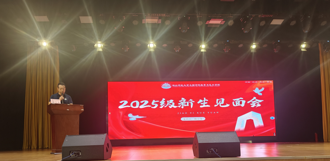 陈小龙书记在主持中代表学院致欢迎辞,向2025级新生表示热烈欢迎,并勉励新生立足学院“强基础、重实践、促成长”的育人理念,扎实完成学业、全面提升综合能力。